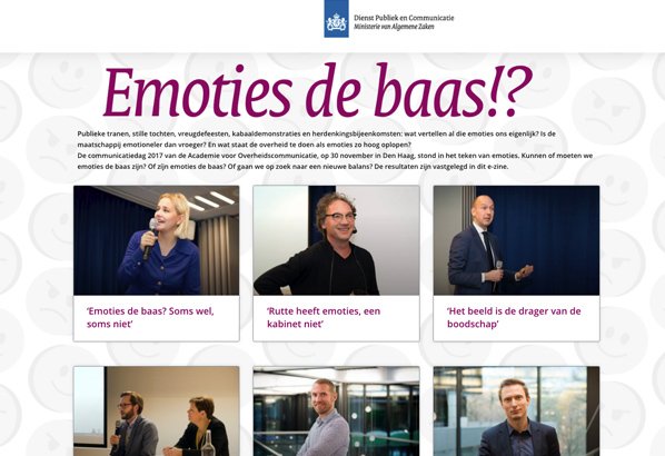 Academie voor Overheidscommunicatie, Provincie Limburg, Provincie Zuid-Holland, Cultuurfonds Leiden, Girls not Brides, ZonMw, A en O Fonds Gemeenten, Ministerie van Sociale Zaken en Werkgelegenheid, Brandweer Hollands Midden, Svn, CJIB, Leiden Marketing, Leiden KennisstadNationale Nederlanden, ANWB, VVN, SWOV, VSNU, Dienst Justitiële Inrichtingen, Sectorinstituut Openbare Bibliotheken, Fonds voor Cultuurparticipatie, gemeente Leiden, Logius, Kunstbalie, Portaal, Nuffic, Science Online, Rutgers, ministerie van Veiligheid en Justitie, ministerie van Infrastructuur en Milieu, ministerie van Onderwijs, Cultuur en Wetenschappen, ministerie van Volksgezondheid, Welzijn en Sport, BijSien, Nationaal Regieorgaan Onderwijsonderzoek (NRO), Pressroom Amsterdam, Cedris, provincie Brabant, LOB, Logeion, Vereniging Spoedhulp Jeugd en Locus